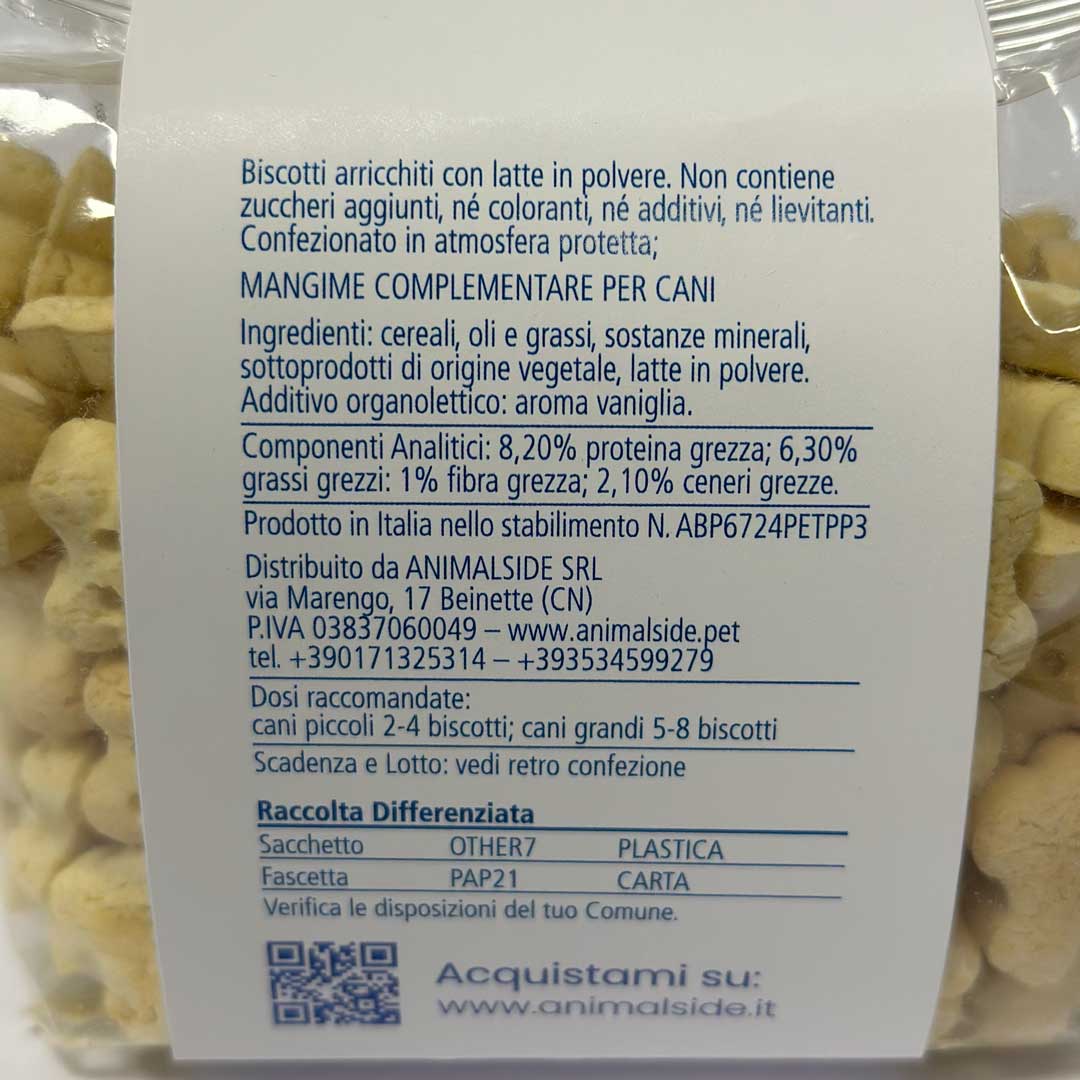 La presenza del latte in polvere li rende una fonte aggiuntiva di nutrimento, mentre l’assenza di zuccheri e additivi li rende adatti anche per i cani più sensibili o con esigenze specifiche.