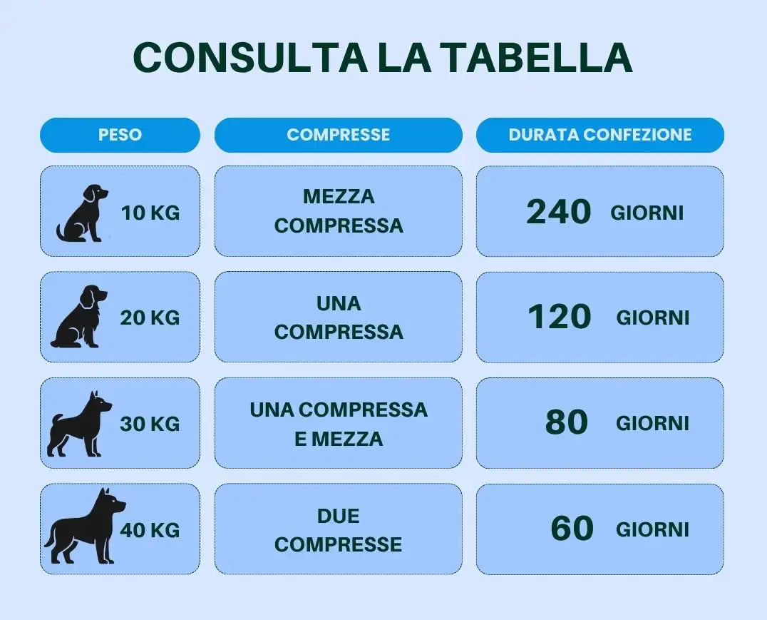 Il tuo cane pesa meno di 10 kg? Ti consigliamo di scegliere la formulazione specifica per cani di piccola taglia, studiata per offrire il giusto supporto articolare in base al peso. clicca qui