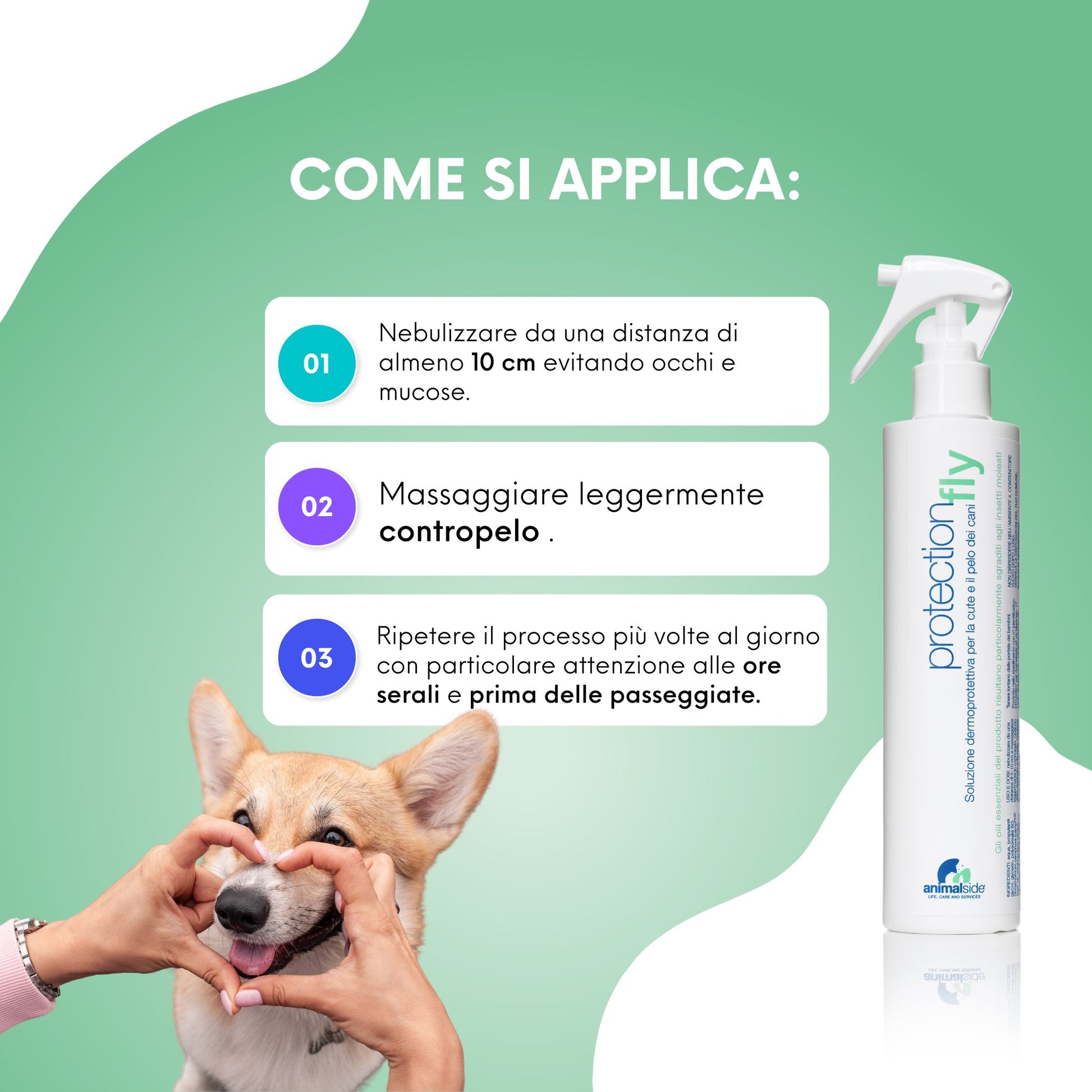 L'utilizzo del Protection Fly non è da intendersi come un sostituto di una profilassi medica veterinaria contro i parassiti, ma come un aiuto integrativo, che va a rinforzare la protezione offerta dai classici antiparassitari.